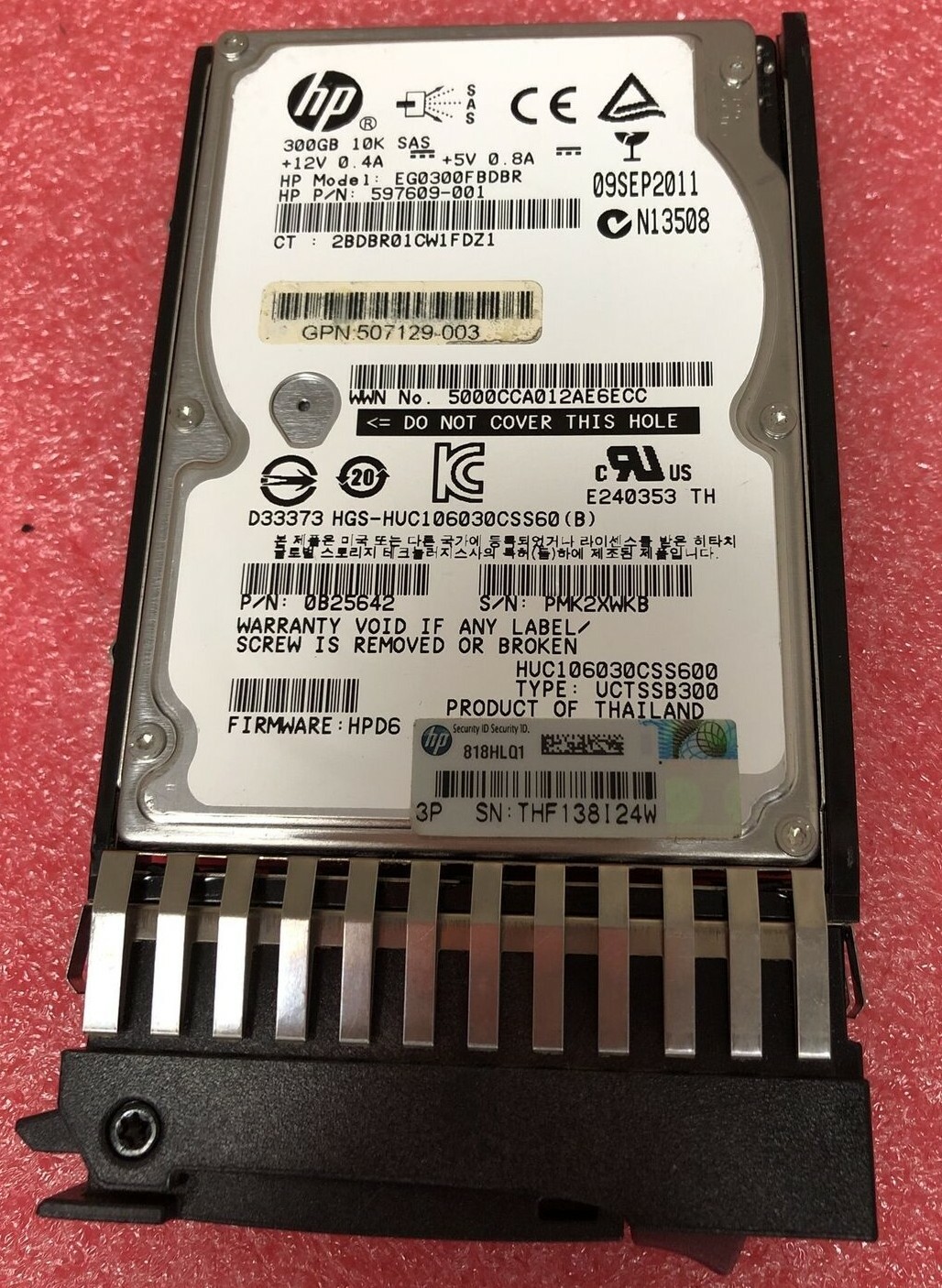 HP 300GB 10K 2.5″ 6G SC SAS 597609-001 EG0300FBDBR HARD DRIVE 0B25642 GEN7