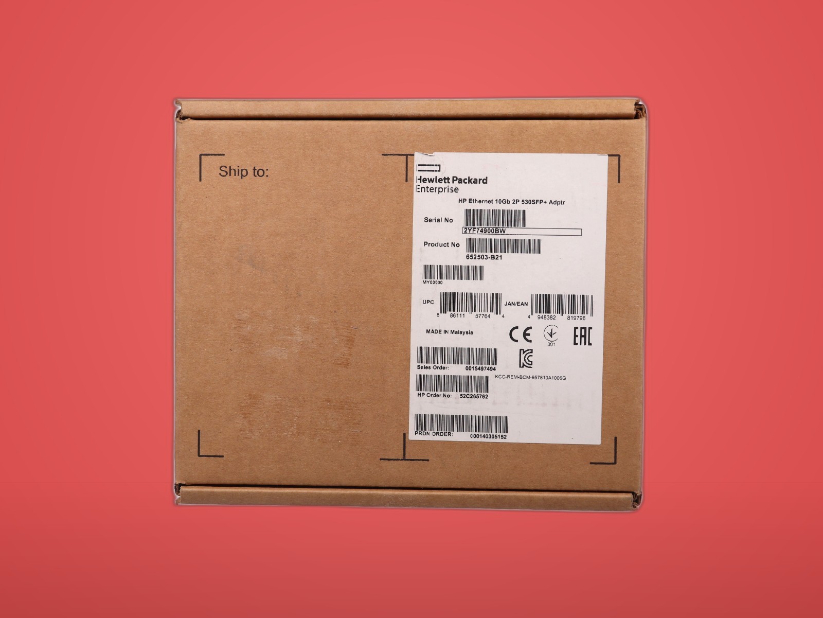 HP 530SFP+ 10Gb Dual Port PCIe Ethernet Adapter Card 652503-B21