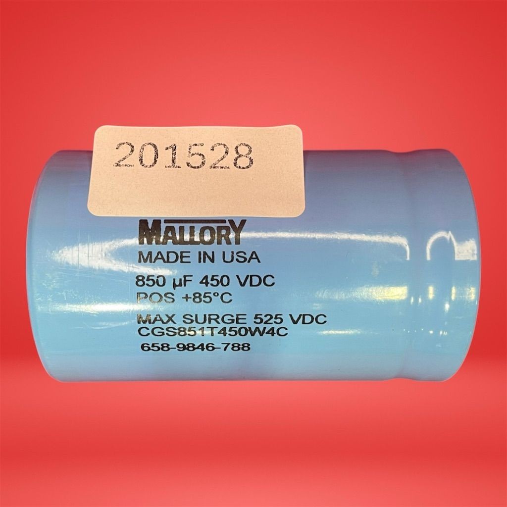 Mallory CGS Capacitor 850uf 450VDC 85C , Max Surge 525VDC, Screw Terminal